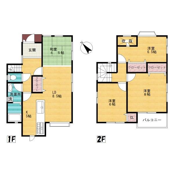 | 設備・サービス | 20帖以上 全居室6帖以上 吹抜け フローリング クッションフロア 即入居可 シューズボックス 上水道公営 下水道 |